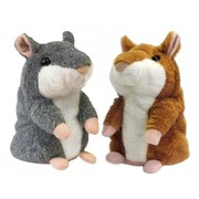 Говорящий хомяк-повторюшка 18 см, коричневый и серый.